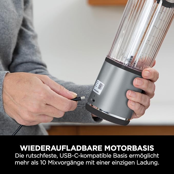 مخلوطکن قابلحمل Ninja Blast BC151EUBK یک دستگاه بیسیم و قدرتمند است که برای تهیه اسموتیها، شیکهای پروتئینی و نوشیدنیهای یخی در هر زمان و مکان طراحی شده است.کلاس نوع سلول باتری UN۳۴۸۱ - باتری لیتیوم یونی / ولتاژ ۷.۴ ولت / تعداد برنامه های خودکار ۱ عدد / قابل شارژ USB-C / لیوان ۵۳۰ میلیلیتری بدون BPA (x حداکثر پر کردن ۴۷۰) / درب ضد نشت و دهانه جرعه / دستگیره حمل / باتری بادوام پایه شارژی USB-C بیش از ۱۰ ترکیب را با یک بار شارژ و تا ۲ ساعت عمر باتری به شما می دهد ، شارژ کامل حدود ۲ ساعت طول می کشد