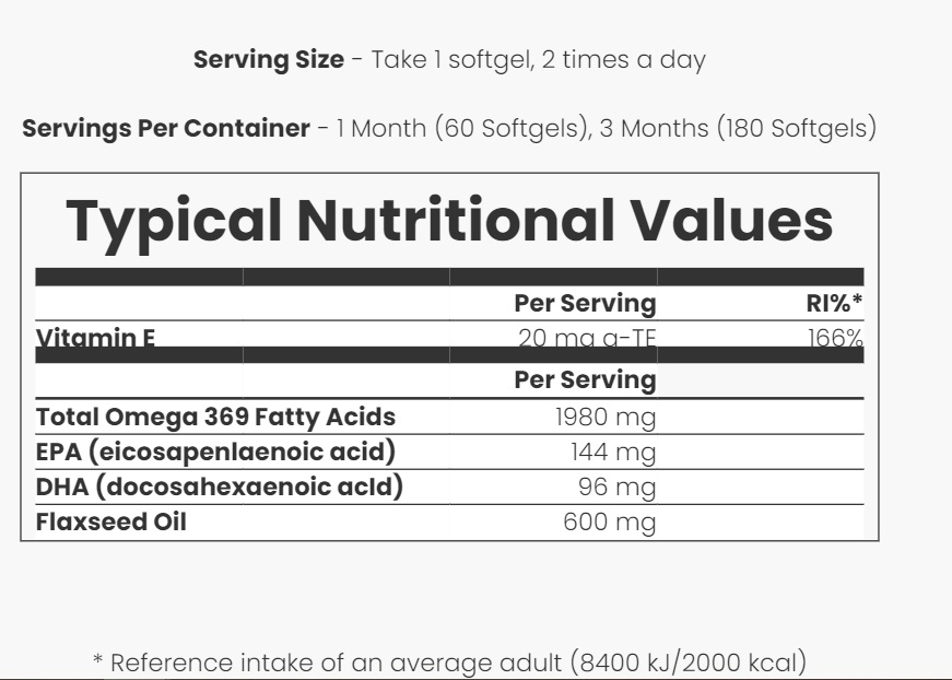 کپسولهای امگا 3-6-9 از برند مایویتامینز (MyVitamins) ترکیبی متعادل از اسیدهای چرب ضروری امگا 3، امگا 6 و امگا 9 را ارائه میدهند که برای حفظ سلامت عمومی بدن مفید هستند.